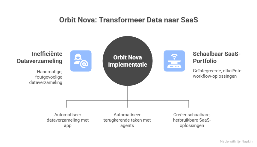 Naarmate workflows verder worden geautomatiseerd, groeit dit uit tot een volledig portfolio van herbruikbare SaaS-oplossingen binnen het Orbit Nova-portaal. Oplossingen die meegroeien, uitbreiden en steeds meer impact bieden voor professionals én organisaties.