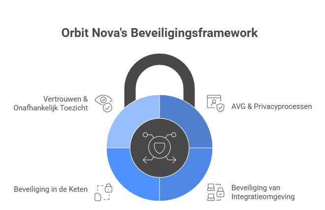 Orbit Nova neemt verantwoordelijkheid voor zowel de eigen integratieomgeving als de keten van systemen waarmee we koppelen. Daardoor houden organisaties grip op hun data, weten ze waar hun gegevens zijn en kunnen ze AI met vertrouwen inzetten.